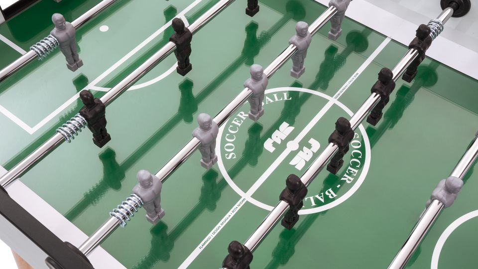 Flamingo è connotato da linee pulite con l’aggiunta di dettagli di pregio, come gli angolari e le gambe tornite in legno di faggio, inclinate per dare maggiore stabilità al gioco. Le colorazioni disponibili sono bianco, antracite e rosso, colori che rendono Flamingo un raffinato accessorio capace di introdursi elegantemente nell’ambiente domestico ed office.